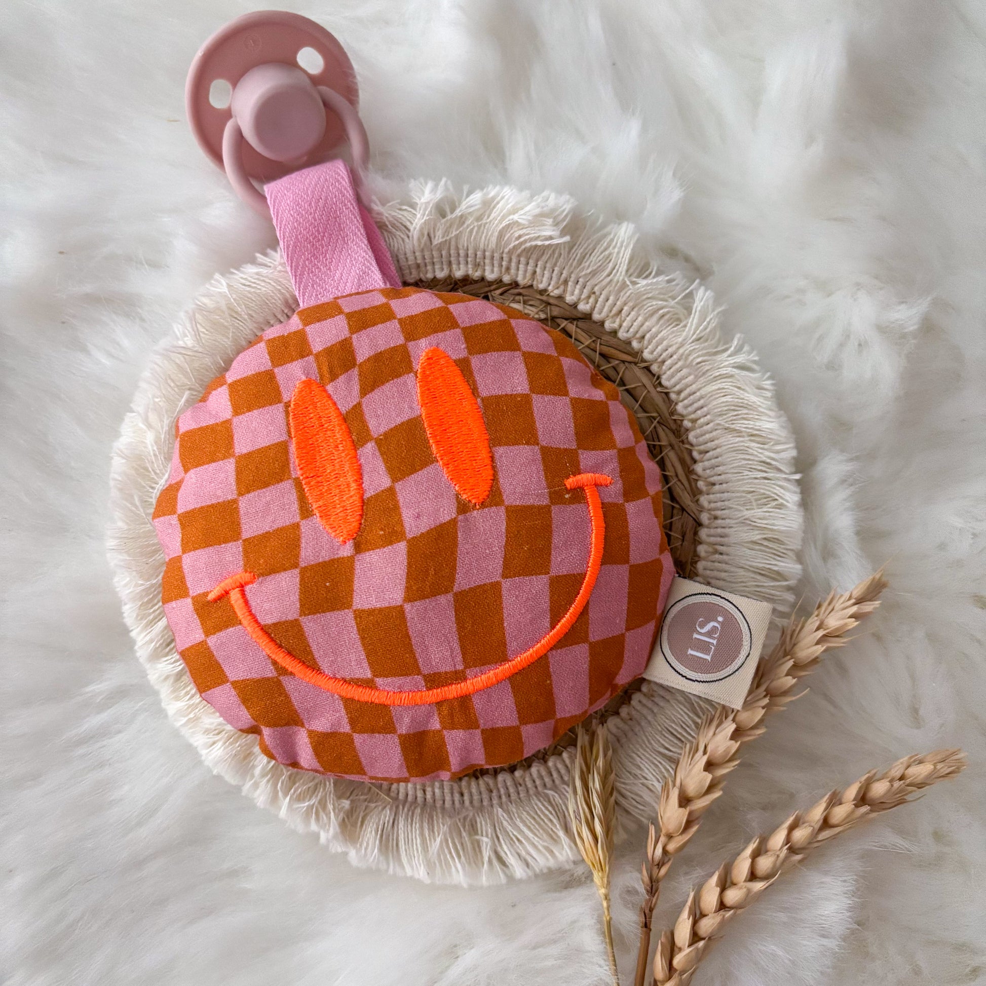 Maat 1: Deze smiley is 10cm - koord ca. 10cm (raden wij aan bij newborns)