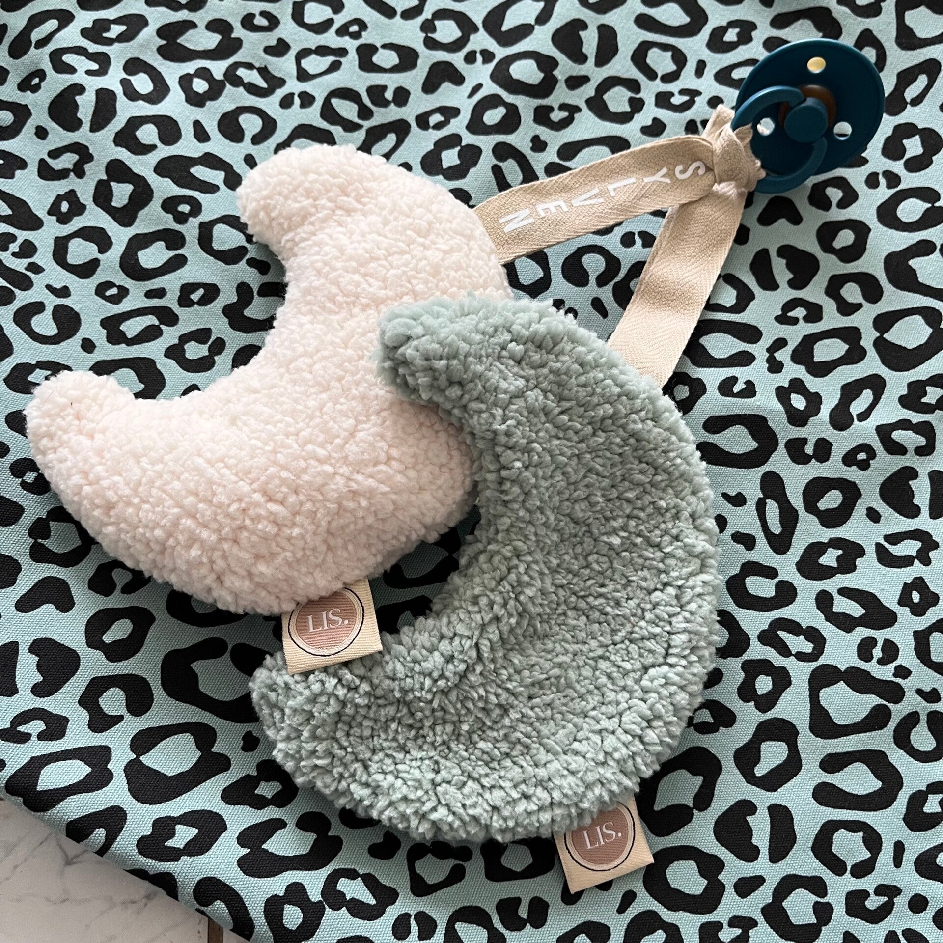 Dit lieve speendoekje is heel handig om aan het speentje van jouw kleintje te hangen. Het speentje raakt minder snel kwijt en is meteen een knuffelvriendje wat geborgenheid geeft. Het speendoekje heeft de vorm van een maan en door de zachte teddy stof is hij heerlijk zacht om mee te knuffelen.