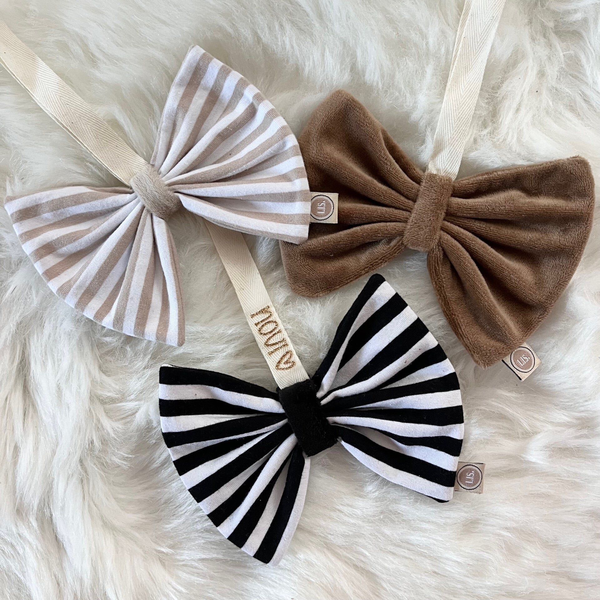 WOW! Hoe schattig zijn deze handgemaakte strik speendoekjes? De Bretonse streep is niet weg te denken in het modebeeld van nu, dus dit hebben wij meteen leuk verwerkt in dit model!