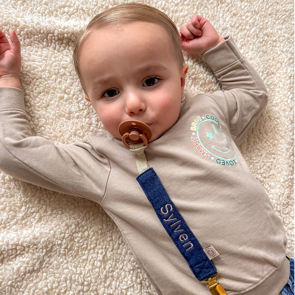Zorg ervoor dat jouw kleintje zijn/haar speentje altijd bij de hand heeft met ons unieke gepersonaliseerde speenkoord. Het stoere ontwerp maakt het niet alleen een praktisch, maar ook een stijlvol accessoire.