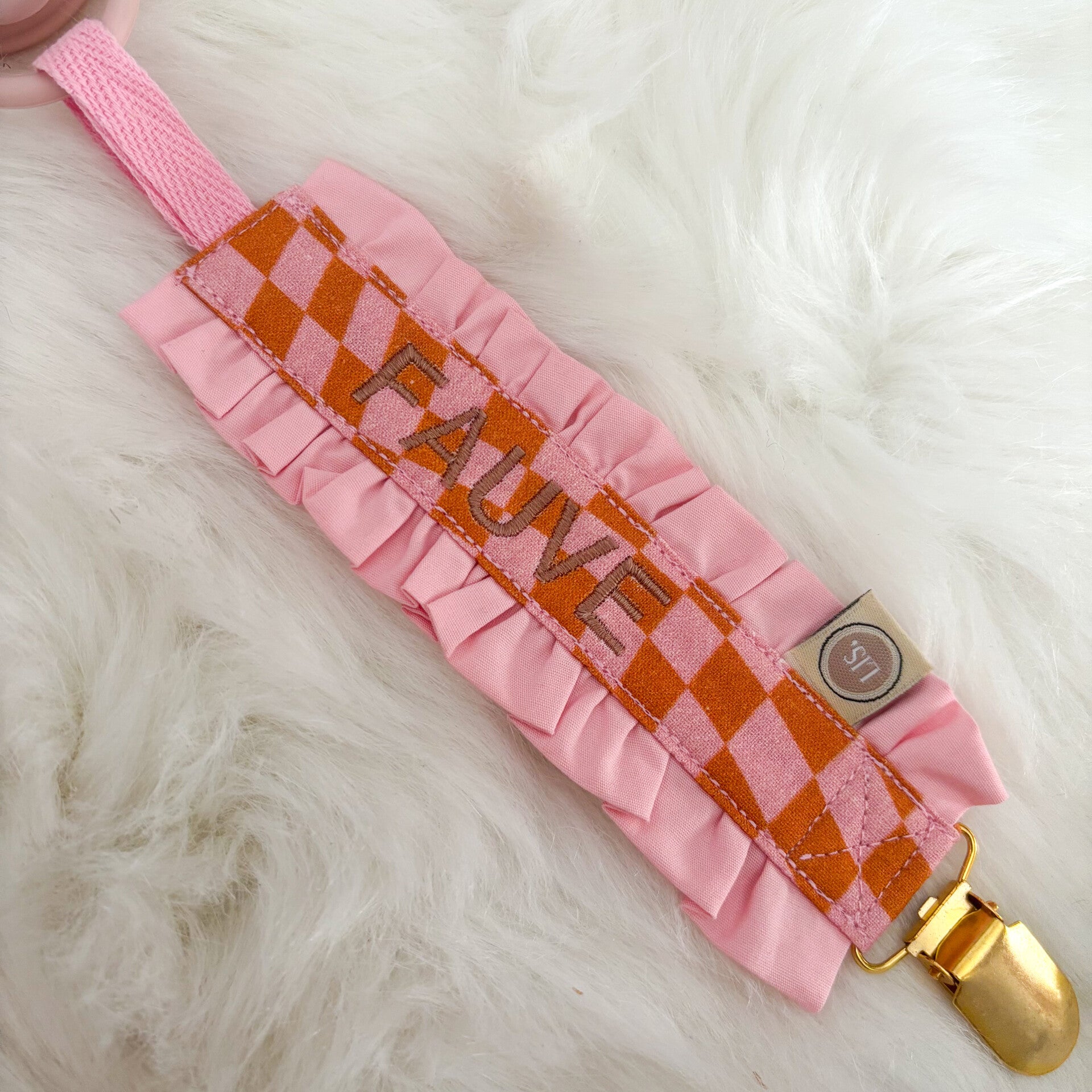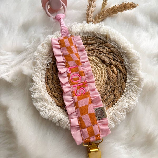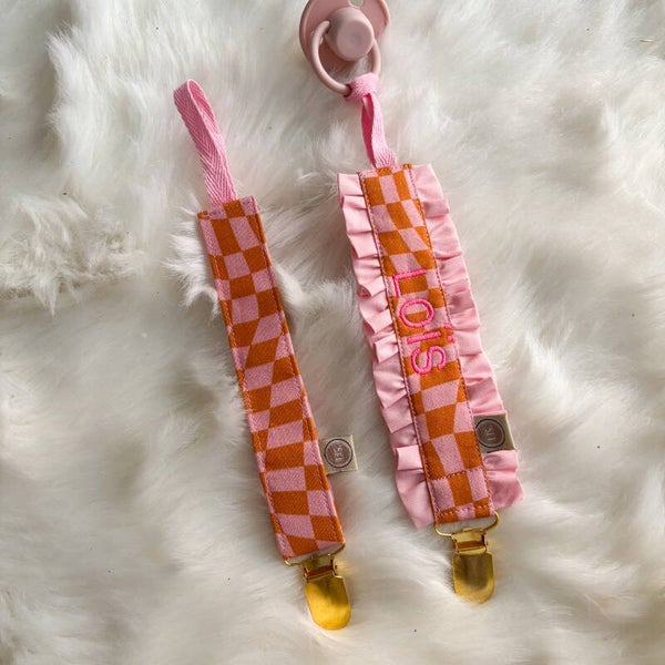 LET OP: de gepersonaliseerde speenkoorden worden speciaal voor jou met de hand ontworpen, genaaid en gepersonaliseerd. Controleer dus goed of je de juiste gegevens hebt ingevuld, want de speenkoorden mogen niet geretourneerd worden.