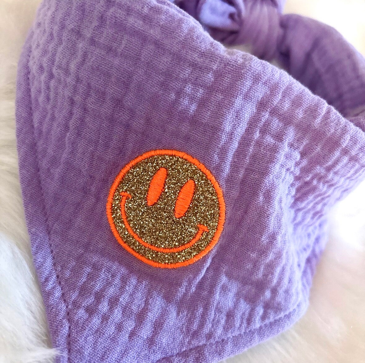 Handgemaakt bandana sjaaltje met glitter smiley!